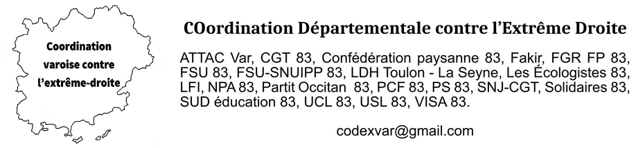 La CODEX 83 (coordination contre l’extrême droite dans le Var) assure la rédaction de Var-Matin, et particulièrement le journaliste pris pour cible par la députée RN Laure Lavalette, de son soutien moral et lui adresse ses encouragements sincères à poursuivre son travail avec sérénité.