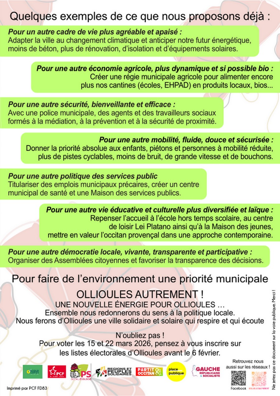 page 2 du tract de la liste OLLIOULES AUTREMENT publié en décembre 2025