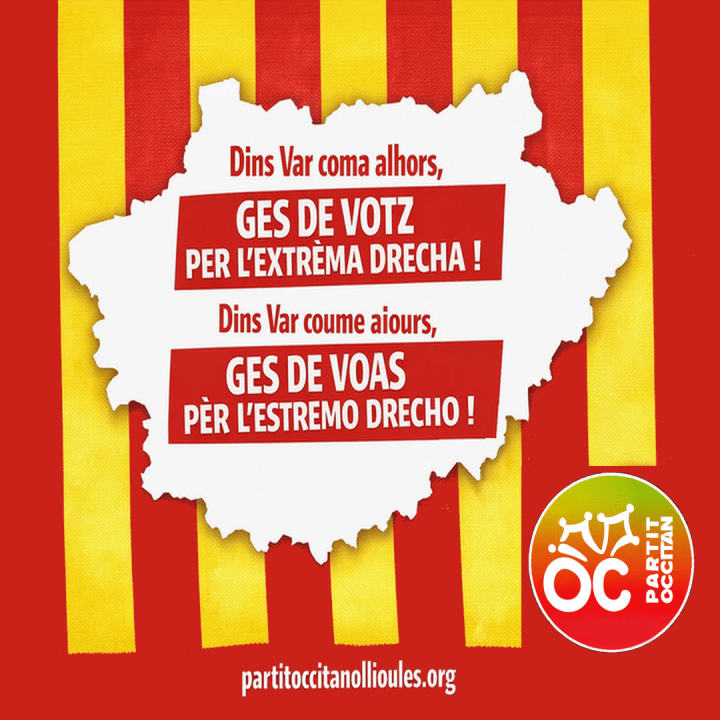 En français ou en occitan provençal (quelle que soit la graphie utilisée) : Dins Var coma alhors, ges de votz per l’extrèma drecha ! Dins Var coume aiours, ges de vouas pèr l’estremo drecho !