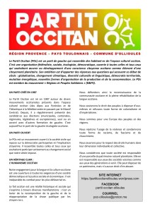 presentation-du-partit-occitan-poc-et-de-son-antenne-a-ollioules tract de présentation du Partit Occitan à Ollioules (extrait du site https://partitoccitanollioules.wordpress.com/ ) Partager : Imprimer(ouvre dans une nouvelle fenêtre) Imprimer Partager sur Facebook(ouvre dans une nouvelle fenêtre) Facebook Partager sur X(ouvre dans une nouvelle fenêtre) X Partager sur Mastodon(ouvre dans une nouvelle fenêtre) Mastodon Partager sur Bluesky(ouvre dans une nouvelle fenêtre) Bluesky Partager sur WhatsApp(ouvre dans une nouvelle fenêtre) WhatsApp Partager sur Telegram(ouvre dans une nouvelle fenêtre) Telegram Envoyer un lien par e-mail à un ami(ouvre dans une nouvelle fenêtre) E-mail J’aime chargement…
