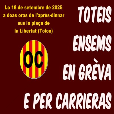 La section « pays toulonnais » du Partit Occitan appelle les salarié·es, les agent·es de la fonction publique, les jeunes et les retraité·es à se mobiliser massivement le 2 octobre 2025 contre la précarité et pour une plus juste répartition des richesses. Manifestation à Toulon : […] Continuer de lire Toutes & tous dans la rue le 2 octobre à Toulon !